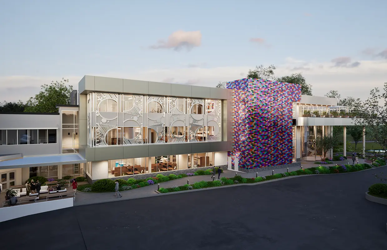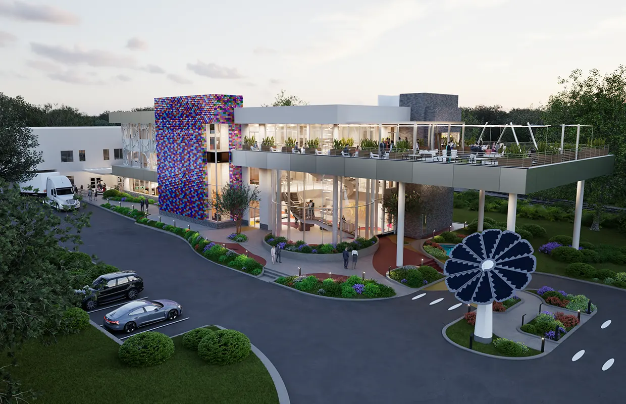 Sol Design Studio started with creative sketches to inspire the design, drawing from the Iconic Monin bottle to the Monin flavor line. Resulting in a building that draws you into the space blending the message of flavor, color, and innovation in all aspects, hiding easter egg in the design throughout the campus.